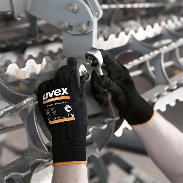 The uvex athletic lite xt assembly gloves feature a comfortable slim-fit design that enables precise work with excellent wearer comfort. Their ergonomic, close-fitting shape allows for a secure feel and effective grip on workpieces. The finely textured, open-pored microfoam coating enhances breathability, helping to minimise excessive perspiration. Additionally, the gloves are industrial-washable, food-safe, and protect against contact heat up to 100°C. With touchscreen compatibility across all standard screens, tablets, and smartphones, there's no need to remove the uvex athletic lite xt gloves during use.