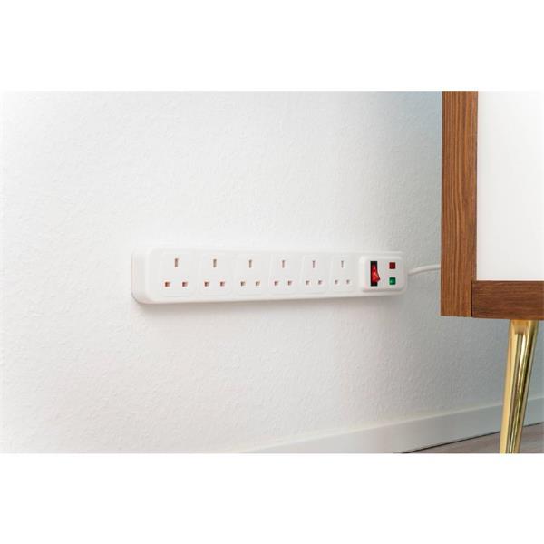 - 6-way Extension Cable ideal for use at home or in the office to provide power to connected devices