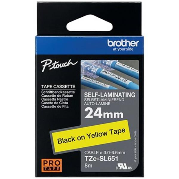 BROTHER P-Touch TZe 24mm x 8m Black on Yellow Self-Laminating Tape Cassette, BA80644