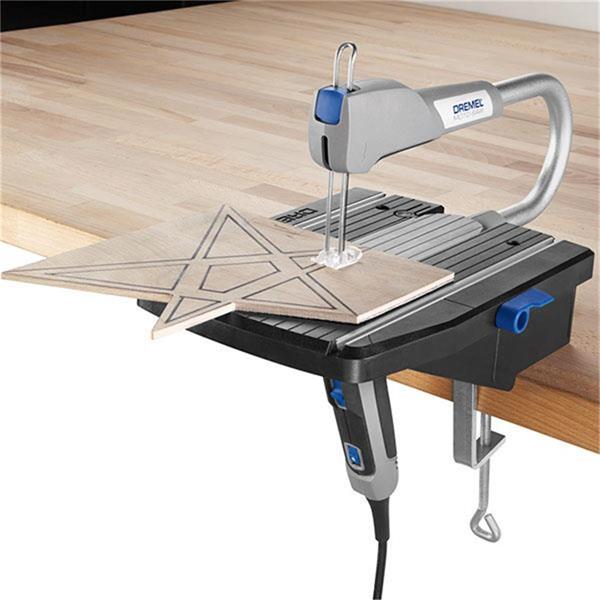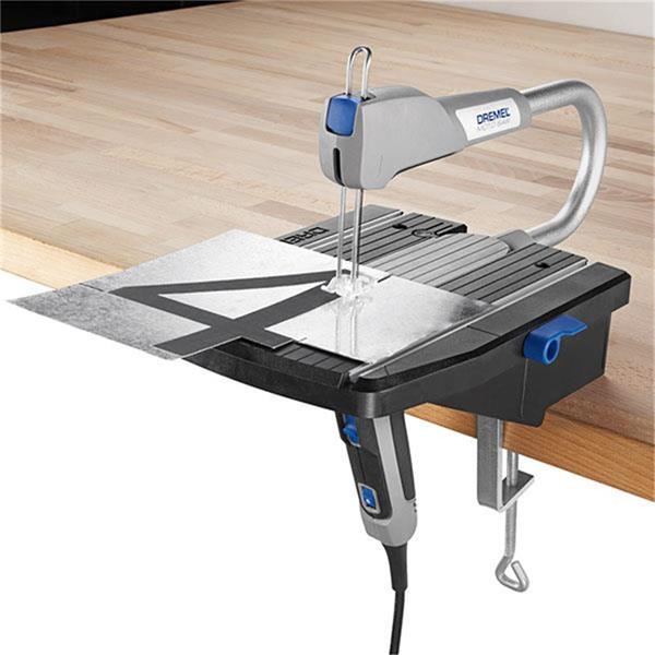 The Dremel Moto-Saw is a multi-functional scroll saw and coping saw in one. It offers a compact and easy solution for making detailed cuts in a variety of materials,including wood, plastic,laminates and metal. This portable, precision saw is easy to store, set-up, and operate and features a tool-free mechanism for quick blade changes. An auto-tensioning feature keeps the blade taut and ready to cut so you don’t have to make blade adjustments, and its slim, ergonomic handle with comfort grip provides control in any cutting position. The Moto-Saw functions as a stationary scroll saw, yet it can be removed from its base to become a portable electric coping saw.