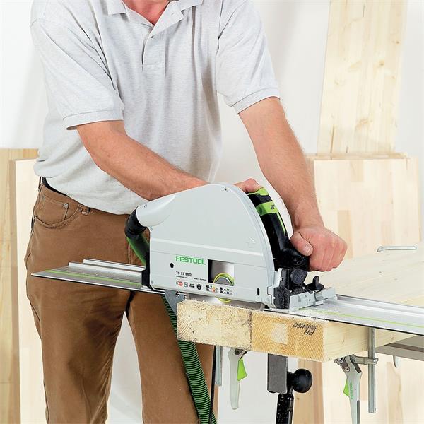 For a greater cutting depth up to 75 mm. Follows only one line. Accurate to the millimetre and without splinters. With the necessary force for each material – lightweight and easy to handle. And the motor with three bearings including MMC electronics for an exceptional service life. The TS 75 combines considerable power and a light weight in a compact device. Together with the guide rail, the TS 75 ensures flexible, fast and precise work.