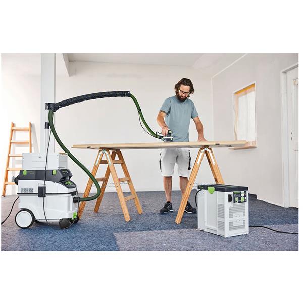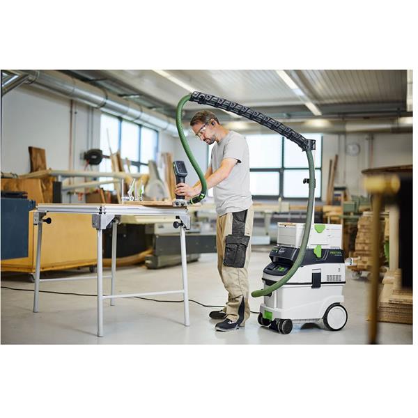 This is what modern dust extraction looks like: The flexible, top-guided extraction arm ensures a clear path - no snagging, no tripping. Thanks to the modular chain links and telescopic tube, it adapts to any work situation. It is compactly stowed in the Systainer and quickly mounted on the vacuum cleaner or MFT. Simply unroll, attach and get started - for ergonomic, clean work with maximum comfort.
