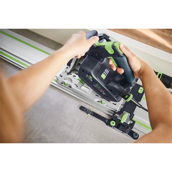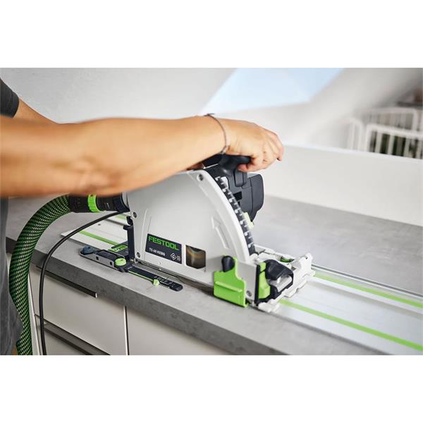 This set is the perfect addition to your plunge-cut saw: With the plunge-cut position indicator, you can reliably hit the exact entry and exit point of your saw blade at any cutting depth. Simply insert it into the groove of the guide rail from above and fix it in place. Then adjust the scale of the marking indicator to the depth setting of your plunge-cut saw, align it with the marking and place the cut-outs precisely where you need them. With the matching one-hand clamps, you can fix your guide rail to the workpiece with just one hand, for safer and more controlled work. There is also space in the Systainer for your saw blades and FS connectors - so you always have your system accessories to hand.