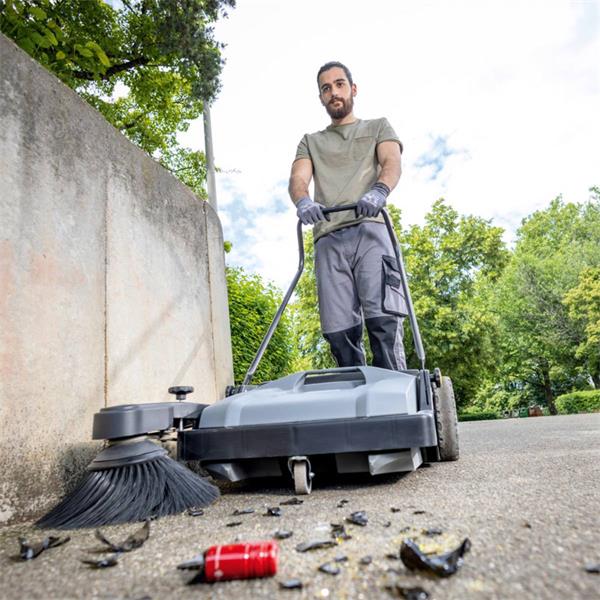 The compact KM 70/15 C Classic manual sweeper is always ready for action to sweep small areas efficiently. It can be used in indoor spaces and outside areas.
