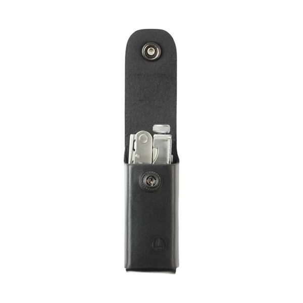 This leather belt sheath features the Leatherman name and logo with a snap closure. Fits 2" wide belt and smaller.