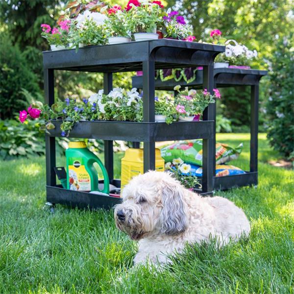 - HDPE (high-density polyethylene) shelves, PVC legs