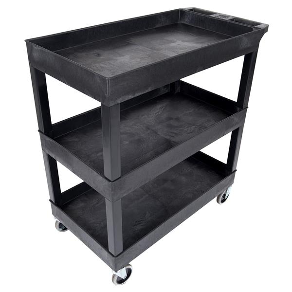 Luxor EC111-B 3-Shelf Black Tub Utility Cart