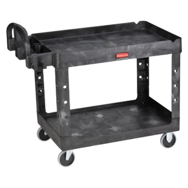 Rubbermaid FG452088BLA 2-Shelf Black Heavy Duty Utility Cart is available to buy online at Caulfield Industrial.