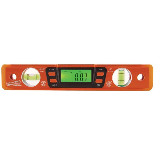 The Savage Digital Torpedo Level is very easy to use. The digital level doesn’t rely on the user to determine if a bubble is accurately between two lines, and it has an Audio alert when it achieves level or plumb. The digital level is the most accurate on the market with a .029 degree accuracy. Other features include an automatic shut off after continual non-use, so it does not to waste battery power. Also, if turned upside down, the screen will automatically adjust so you can read it without any problems.