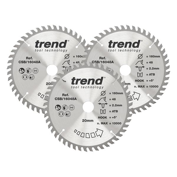 TREND 160mm X 20mm X 48T Diameter Craft Saw Blade, 3 pack CSB/160/3PK