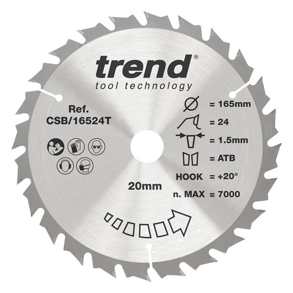 TREND 165mm x 20mm x 24T Thin Kerf Sawblade CSB/16524T