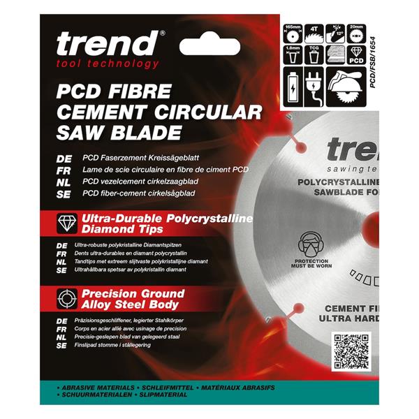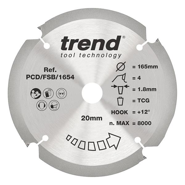 TREND 165mm X 4T X 20mm Fiberbroad Saw Blade, C1PCD/FSB/1654