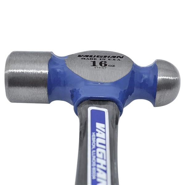 Vaughan ball pein hammer features one crowned striking face with bevelled edges and one spherical striking face. Use the hammer for bending and forming sheet metal, driving punches and chisels, and setting rivets.