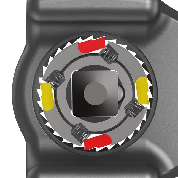 The ratchet that can also be safely and officially used as a hammer. The KOLOSS is a reversible, heavy-duty ratchet that can be used with a load of at least 600 Newton metres. The dual ratchet teeth and the minimum return angle of only 6° ensure rapid and precise screwdriving even in confined situations. And the best thing: absolutely no impact on the hammer faces, however hard, can destroy the ratchet mechanism. Multi-component Kraftform handle optimised to withstand pressure, impact and tensile loads; take-up for KOLOSS extension 8780 C and KOLOSS centring pin 8781 C at end of handle. Also included in the set: 1 pad to protect materials and surface areas, 1 Koloss extension for the transfer of even more torque, 1 unlocking pin and 1 holster - so the Koloss can always be at hand.