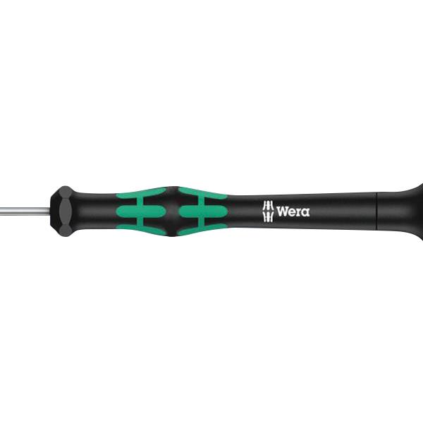The Wera Kraftform Kompakt Micro Screwdriver Set has been designed for use with precision screw connections such as those found in smartphones. At the heart of this set is the Wera Micro Bitholding screwdriver with Kraftform handle. This has been ergonomically designed to allow for fast turning and higher torque to be transferred when tightening or removing screws. The handle with interchangeable blade system allows for rapid exchange of blades. Once a bit is inserted into the chuck the automatic locking mechanism ensures a secure fit. To exchange bits, just push the sleeve forwards to remove the bit. The chuck accepts bits with a 4 mm half-moon drive or bits with a 4mm HIOS drive. There is also free. turning sleeve on the chuck for easy positioning of the tool during screwdriving jobs. Supplied in a compact storage pouch which protects the tool during storage, the set includes an assortment of 10 bits with 4 mm half moon drive